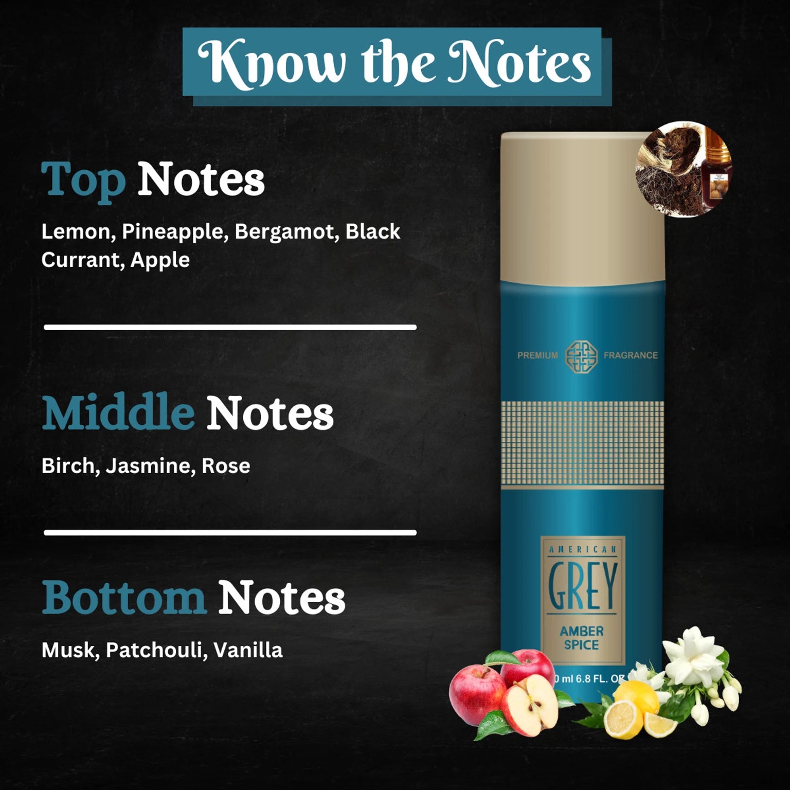 American Grey Amber Spice Premium Series Fresh , Woody, and Irresistibly Alluring Deodorant Spray - For Men (200 ml)